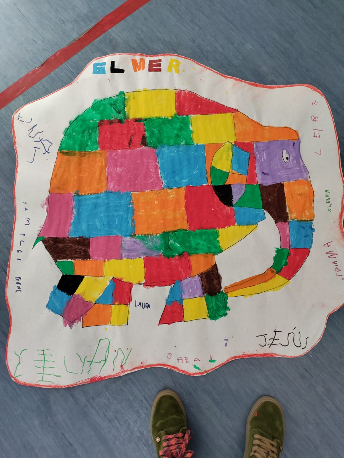 LOS NIÑOS Y NIÑAS DE EDUCACIÓN INFANTIL DURANTE EL MES DE NOVIEMBRE HEMOS LEÍDO EL CUENTO DE ELMER Y HECHO ENTRE TODOS UN DIBUJO DE SU PROTAGONISTA.