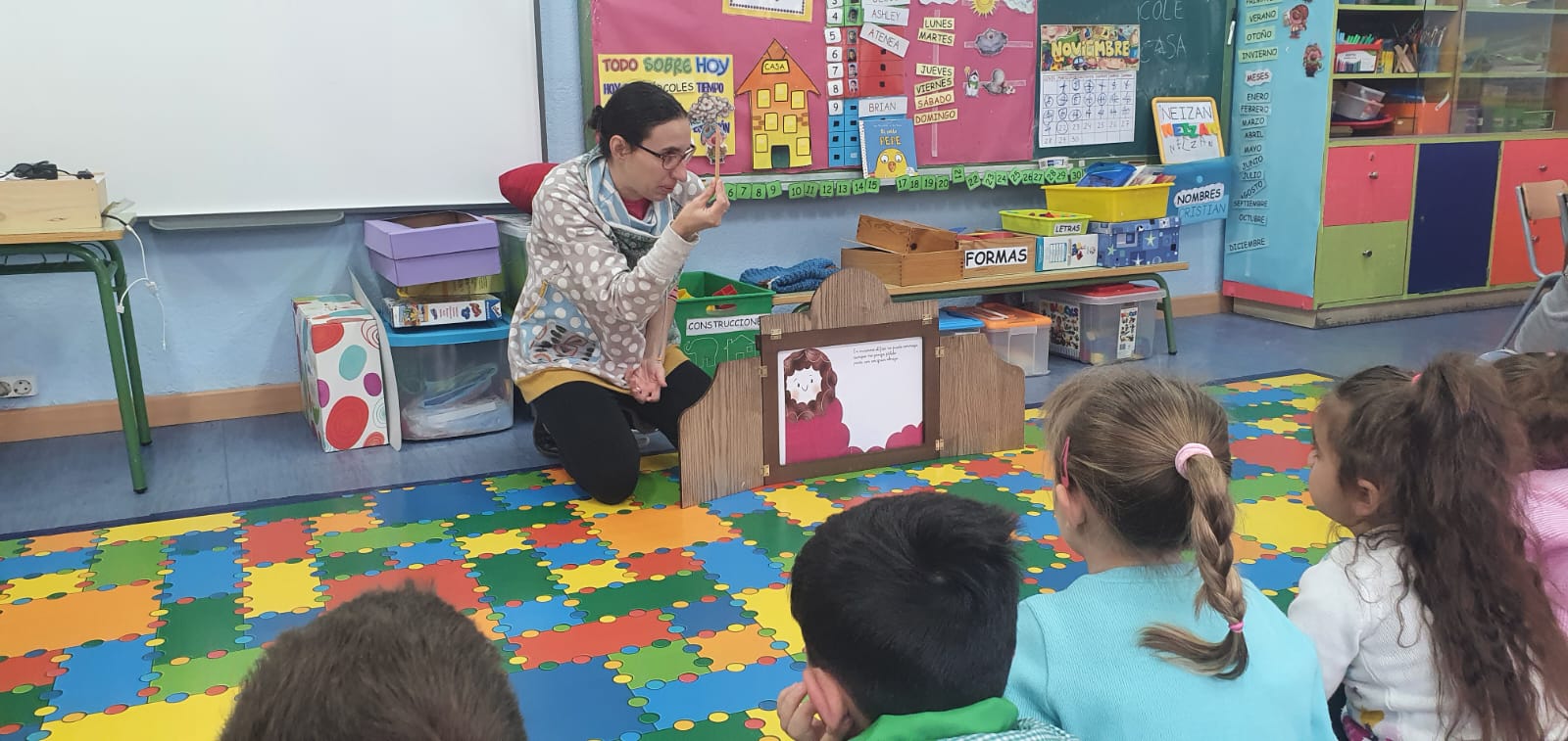 Hoy 24 de Noviembre los alumnos de infantil hemos recibido la visita de Silvia, una profe muy simpática que nos ha contado un cuento muy divertido con la ayuda de un kamishibai.